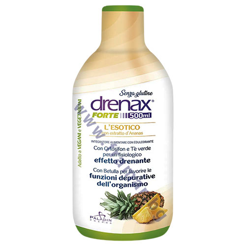Дренакс Форте Ананас от италианския бранд Paladin Pharma е хранителна добавка в течна форма, разработена на базата на ананас и рутин, в комбинация със сок от бреза и растителни екстракти, включващи ортосифон, бял трън, артишок, гроздови семена, леспедеза, касис, сладка детелина и готу кола. Продуктът оказва ценна подкрепа за естествените пречистващи процеси, както и за поддържането на нормалните нива на течности в тъканите.