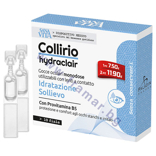 Sanavita Collirio Monodose Hydraclair Paladin Pharma е стерилен, плътен, прозрачен, хидратиращ и подхранващ разтвор на базата на провитамин В5, натриев хлорид и HydraFlex.