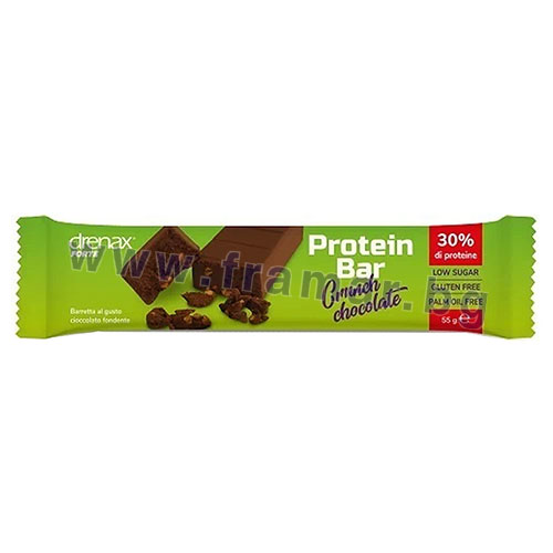 Drenax® Forte Protein Bar – Crunch chocolate е протеинов бар с вкус на тъмен шоколад, съдържащ 30% протеин, с ниско съдържание на захар, без палмово масло и без глутен. Той е подходящ избор за хора, които търсят балансирана и вкусна закуска или междинно хранене, осигуряващо висококачествен протеин.
