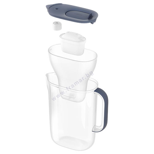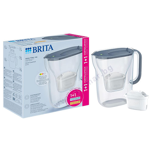Комплектът съдържа филтрираща кана BRITA Style Essential Cool LED и два вида филтриращи патрони: