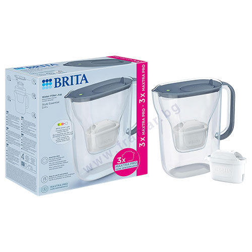 Този комплект включва филтрираща кана за вода модел BRITA Style Essential Cool LED и 3 броя филтри BRITA MAXTRA PRO. Каната се отличава с елементи в каменно син цвят.