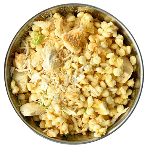 Сладък картоф 48.2%, пилешко месо филе 32.1%, кускус (грис от твърда пшеница, вода) 16.1%, пресен лук, лайм, кокосово масло, сол, пресен розмарин, черен пипер.