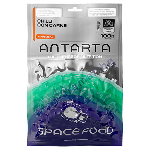 След приготвяне, чили кон карне преминава през щадящ процес на лиофилизация, който запазва естествените хранителни вещества, аминокиселини и вкусови качества без използване на добавки, консерванти или ГМО. След добавяне на вода и кратко изчакване, ANTARTA чили кон карне отново става готово ястие за консумация, осигуряващо удобен, надежден и качествен прием на истинска храна.