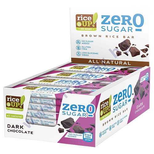 Открийте натуралния оризов бар RiceUp! ZERO SUGAR - изцяло безглутеново изкушение, приготвено от пълнозърнест кафяв ориз и обвито във фин черен шоколад без добавена захар. Това е идеалният лек и полезен десерт за Вашето динамично ежедневие, на който можете да се насладите напълно без угризения.