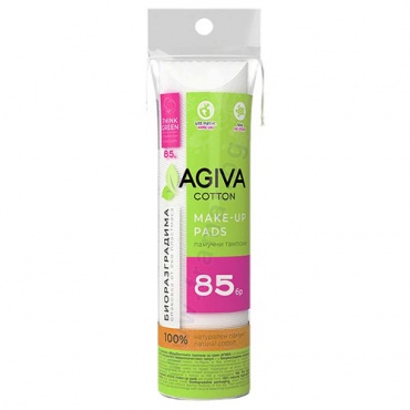 Високо абсорбентните тампони за грим АГИВА са произведени от 100% натурален, висококачествен памук и в биоразградима опаковка, която се разгражда много по-бързо и без остатъци в почвата. В производствения им цикъл е включена специална технология с неутрални избелващи съставки, която ги прави подходящи за всеки тип кожа. Пресовани са така, че да не оставят власинки по лицето, попиват бързо и ефективно. Създадени с мисъл за теб и природата.