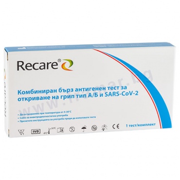 КОМБИНИРАН БЪРЗ АНТИГЕНЕН ТЕСТ ЗА ОТКРИВАНЕ НА ГРИП ТИП А/Б И SARS-COV-2 (ТАМПОН) * 1 RECARE