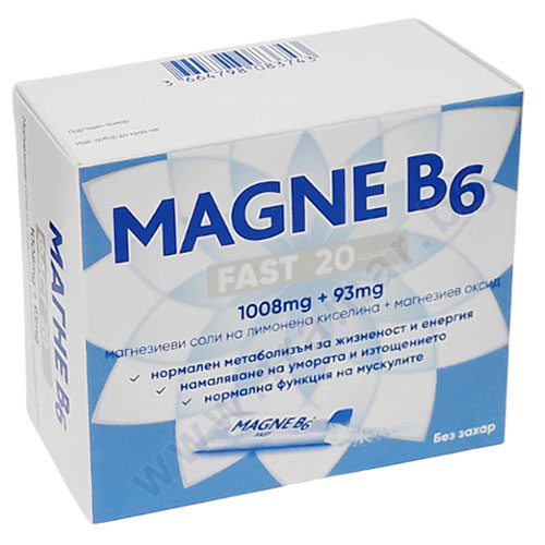 Magne B6 Fast съдържа 1008 mg магнезиев цитрат с висока степен на разтворимост, който улеснява усвояването от организма. Начинът, по който магнезият се приема, зависи от формата на съединението, в което е включен. Магнезиевият цитрат в Magne B6 Fast осигурява добра бионаличност на магнезиевите йони за ефективен прием на магнезий.
