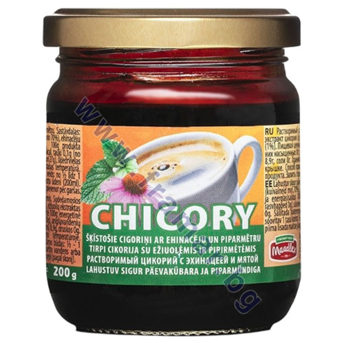 Пастата от цикория с добавени ехинацея и мента представлява превъзходна натурална комбинация. Съдържа концентриран извлек от корени на цикория (с минимум 70% сухо вещество), обогатен с прецизно селектирани екстракти от ехинацея (4%) и мента (1%).