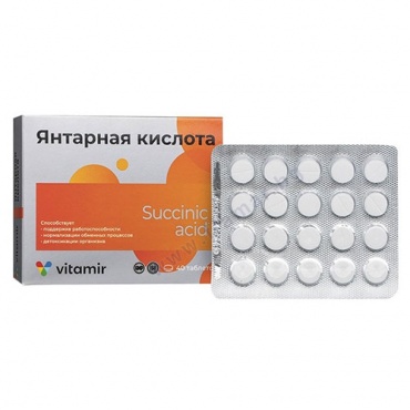 Янтарната киселина (известна още като сукцинат) е ценен елемент, който подпомага поддържането на добрата кондиция на организма и жизнеността на клетките. Тя се произвежда естествено от тялото и може да се набави чрез определени храни – кисело мляко, ферментирали зеленчуци, морски дарове, цвекло, бирена мая, грозде и вино. Тъй като организмът не разполага със способността да я натрупва в запас, често възниква необходимост от допълнителния й прием. Таблетките с прецизно дозирана янтарна киселина са удобно решение в моментите, когато тялото има нужда от подкрепа.