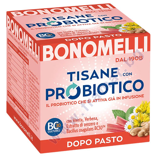 Ароматен и освежаващ билков чай с добавен пробиотик. Формулата комбинира внимателно подбрани висококачествени билки, създадени от италианската марка Bonomelli. Чаят е разработен с фокус върху подпомагане на нормалните функции на храносмилателната система. Комбинацията от билки и пробиотик допринася за поддържането на естествените процеси в стомашно-чревния тракт и създава усещане за комфорт след хранене.