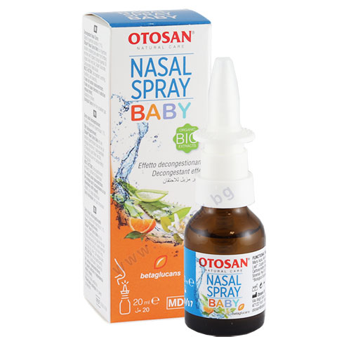 Медицинското изделие Otosan* baby спрей за нос е назален деконгестант, който действа локално чрез осмоза като спомага за намаляване на назалната конгестия (запушен нос) и индиректно, възпалението. Otosan® baby спрей за нос е хипертоничен разтвор (1,1%) на морска вода, обогатен с карбоксиметил бета-глюкан, меден глюконат, органичен гел алое вера и органично етерично масло от портокал.