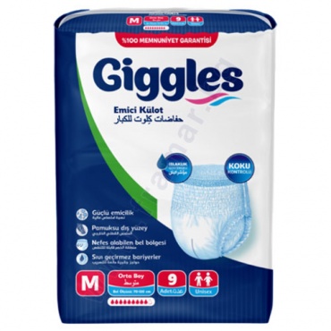 Предпазното бельо за възрастни Giggles е създадено за активни хора, които търсят дискретна и сигурна защита при лека до умерена инконтиненция. То се облича като стандартно бельо, осигурява удобство при движение и не се забелязва под дрехите. Еластичният колан и анатомичната форма прилягат плътно към тялото, без да притискат.