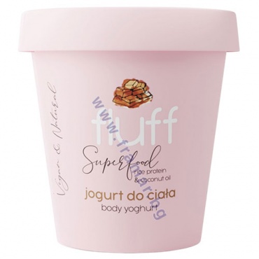 Fluff йогурт за тяло с оризов протеин и шоколад интензивно подхранва, хидратира и омекотява кожата, като я обгръща с богат аромат на шоколад.