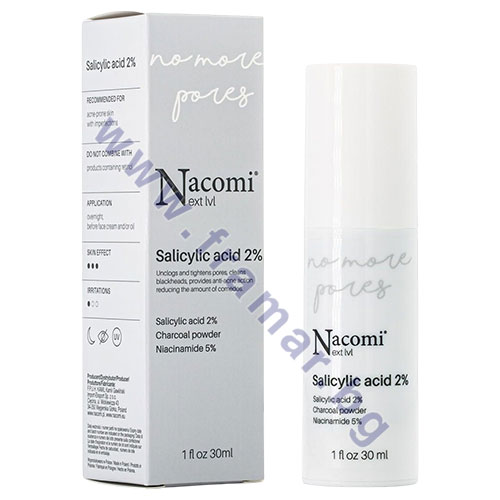 NACOMI NEXT LEVEL Серум за лице със салицилова киселина 2% е ефективен ексфолиращ серум, създаден специално за мазна, комбинирана и проблемна кожа, склонна към акне, черни точки и разширени пори.