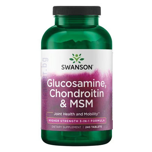 Комбинираната формула на Swanson, съдържаща глюкозамин, хондроитин и МСМ, е разработена за цялостна подкрепа на опорно-двигателната система. Този състав „три в едно“ съчетава естествени компоненти, които участват в структурата на хрущяла (глюкозамин и хондроитин), с допълнителните ползи от метилсулфонилметана (МСМ). МСМ служи като източник на висококачествена органична сяра – ценен минерал, който подпомага устойчивостта и гъвкавостта на сухожилията, ставните връзки и останалите структурни елементи на ставите.