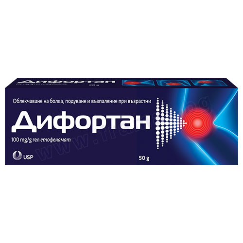 - Всеки 50 g Дифортан съдържат 5 g етофенамат.