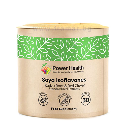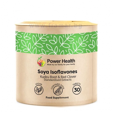 Комплексът изофлавони от три различни растителни източника (соя, корен от кудзу и червена детелина) на британския бранд Power Health съдържа 35,25 mg изофлавони. Предлага се под формата на малки, лесни за преглъщане таблетки. Този продукт подпомага цялостното благосъстояние на жената през периода на менопаузата.