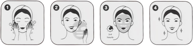 Нанесете маската в края на рутината за грижа за кожата и я оставете докато стане прозрачна или за 4 до 6 часа.
