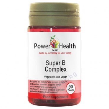 Power Health Super B Complex се предлага в опаковка от 90 таблетки, които са достатъчни за тримесечен прием. Продуктът е напълно подходящ за вегани и вегетарианци.