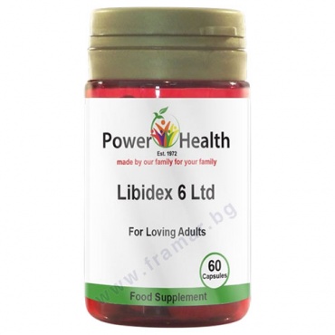 Libidex 6 Ltd на британската марка Power Health е прецизно балансиран растителен комплекс, създаден да подкрепя жизнеността и сексуалната функция при възрастни. Формулата съчетава натурални съставки, които благоприятстват либидото и общия тонус на организма.