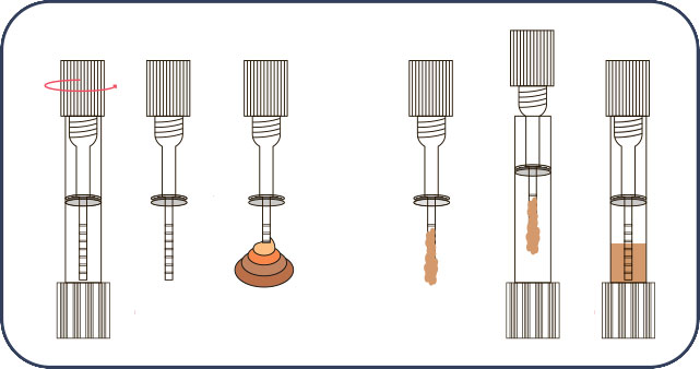1. Съберете проба от изпражнения, използвайки предоставената епруветка за събиране. Първо развийте малката капачка на епруветката и извадете пробовземната пръчица.