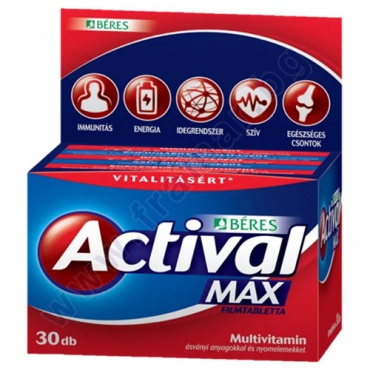 АКТИВАЛ МАКС е мултивитаминен препарат с повишено съдържание на Витамин C. Витамин C допринася за нормалната функция на имунната система, като по този начин поддържа здравето. Други активни съставки в продукта допринасят за адекватното снабдяване на организма с витамини, минерали и микроелементи, като по този начин подпомагат поддържането на доброто състояние и работоспособност. Консумацията на продукта се препоръчва предимно в случаи на значително физическо и психическо натоварване.