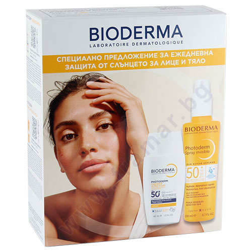 БИОДЕРМА ФОТОДЕРМ КОМПЛЕКТ ЕКСДИФЕНС УЛТРАФЛУИД SPF50+ БЕЗ ЦВЯТ 40 мл + СЛЪНЦЕЗАЩИТЕН СПРЕЙ ИНВИЗИБЪЛ SPF50+ 200 мл
