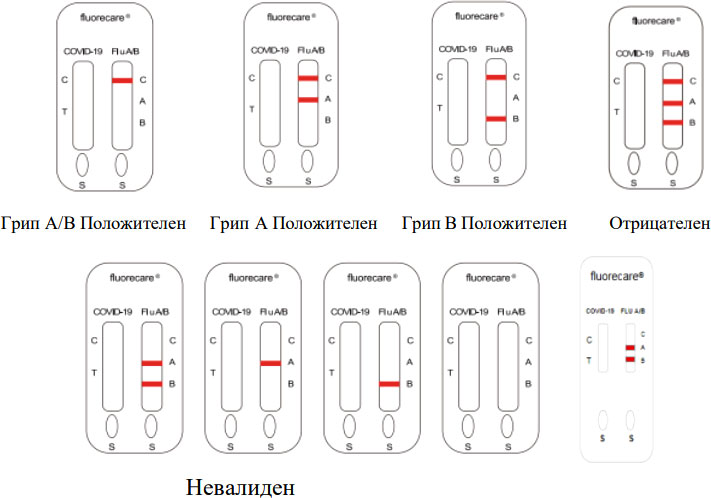 | Положителен | Положителен | Отрицателен | Открити са антигени на SARS-CoV-2 и Influenza A |