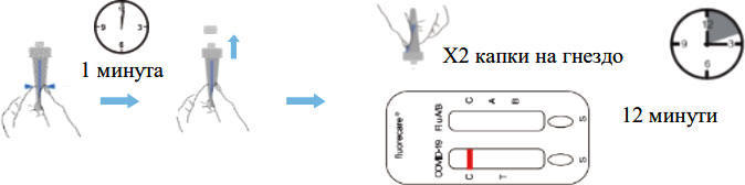 Антигените на SARS-CoV-2 и Influenza A/B се откриват качествено в проби от орофарингеален, назален или назофарингеален секрет чрез метода на колоидното злато.