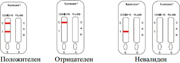 | Положителен | Положителен | Положителен | Открити са антигени на SARS-CoV-2, Influenza A и Influenza B |