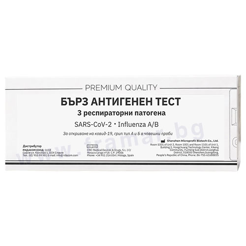Комбиниран антигенен тест за SARS-CoV-2 и Influenza A/B (колоидно-златен хроматографски имуноанализ)