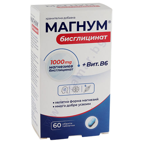 МАГНУМ БИСГЛИЦИНАТ + ВИТАМИН B6 таблетки * 60 е свързан към