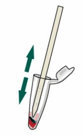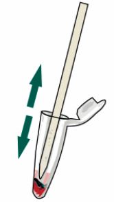 Извадете тампона и вземете от сместа с пипетата. Ако сместа е много гъста, може да добавите още една капка реагент.