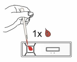 Поставете една капка от течността в гнездото за проба на тест касетата. Оставете да се абсорбира за няколко секунди.