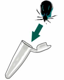 Внимателно отстранете кърлежа, като се уверите, че са напълно премахнати както тялото, така и главата. Препоръчва се използването на подходящ инструмент за отстраняване на кърлежи. След отстраняване на кърлежа и преди провеждане на теста, той може да бъде съхраняван в предоставената епруветка. За най-точни резултати се препоръчва тестът да се извърши непосредствено след отстраняване на кърлежа. За оптимално изследване е необходимо кърлежът да бъде старателно смачкан, като се обръща специално внимание на средното черво, където се намират борелиите.