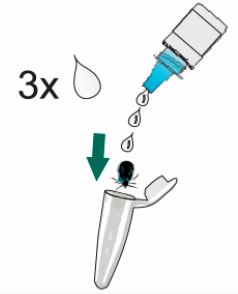 Поставете кърлежа в епруветката за проба. Добавете 3 капки реагент.