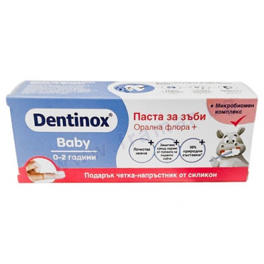 Арт. №: 30127618ДЕНТИНОКС ПАСТА ЗА ЗЪБИ БЕБЕ 0 - 2 години 30 мл + ЧЕТКА НАПРЪСТНИК
