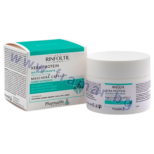 RINFOLTIL Kera-Protein Hair Mask – Интензивна подхранваща грижа за жизнена коса. Подхранва и подобрява общия вид на косъма. Нейната формула съчетава селекция от ценни натурални масла и ключови компоненти, които действат благоприятно върху структурата на косата, като я правят по-устойчива и сияйна.