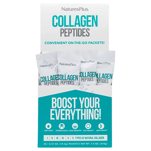 Продуктът на NaturesPlus включва пълен спектър от 6-те основни типа колаген (I, II, III, IV, V и X). Те работят в синергия, за да допринесат за нормалното функциониране на тялото по следния начин: Тип I– поддържа еластичността на кожата;Тип II– подпомага нормалното състояние на ставите, хрущялите и хидратацията на дермата;Тип III– за поддържане структурата на кожата и нормалната функция на кръвоносните съдове;Тип IV– допринася за клетъчното здраве;Тип V– грижа за кожата, сухожилията и подкрепа за имунната система;Тип X– допринася за нормалното състояние на ставите, костите, мускулите, ноктите и косата.
